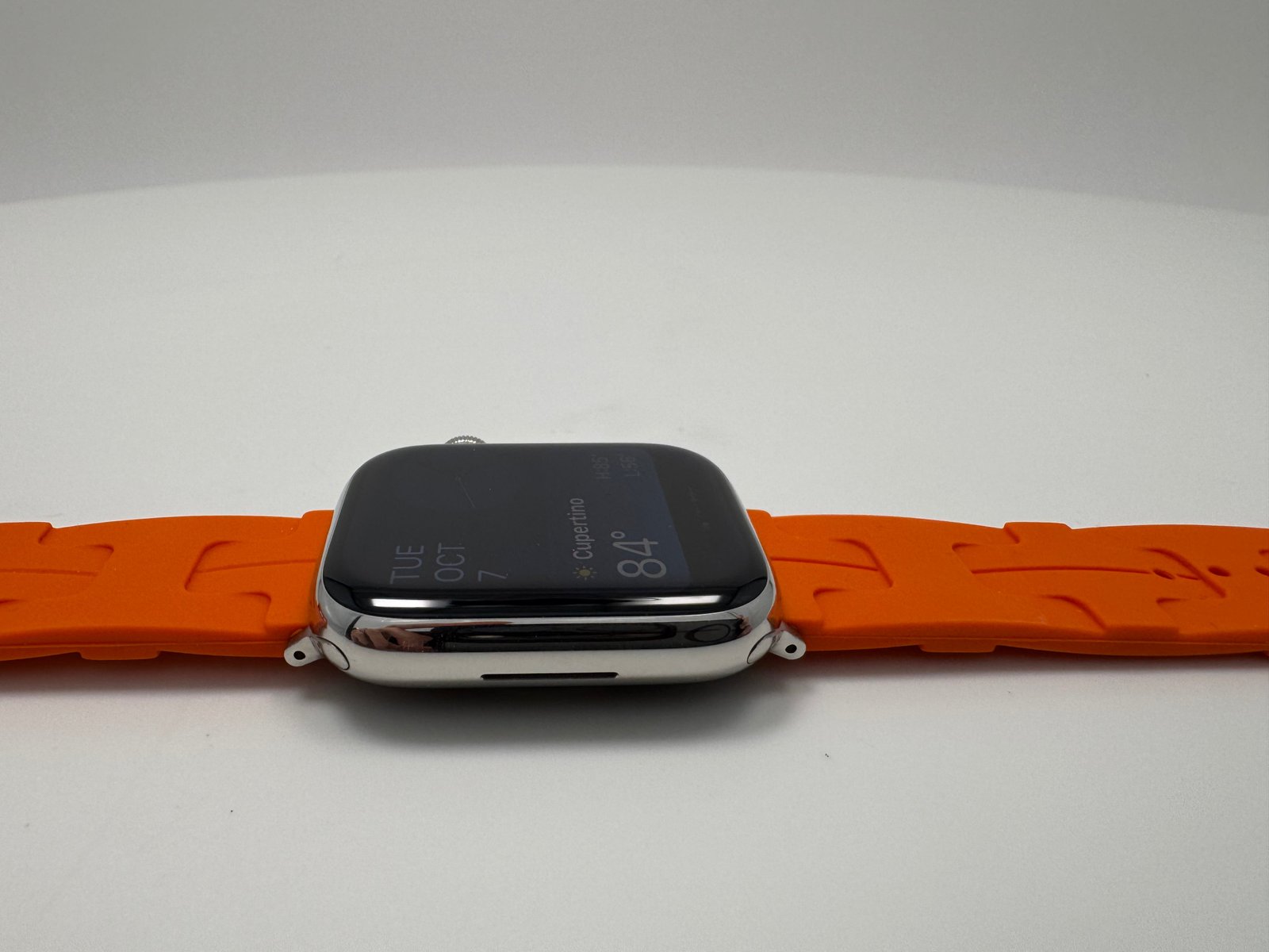 • Bands: Aftermarket Hermès-style sport bands (Orange, Midnight, Starlight)